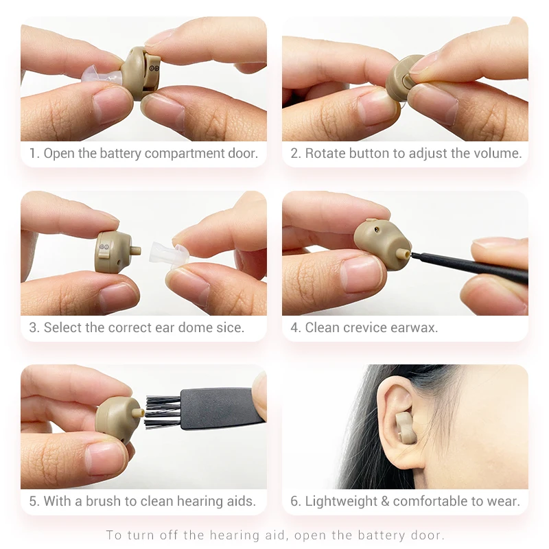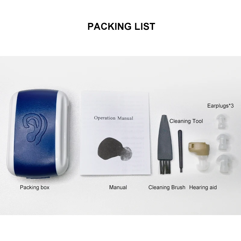 Примечание:Каждая посылка имеет только один слуховой аппарат, его можно носить как на левом, так и на правом ухе. Поэтому, если вы хотите носить пару слуховых аппаратов, вы можете купить два продукта.