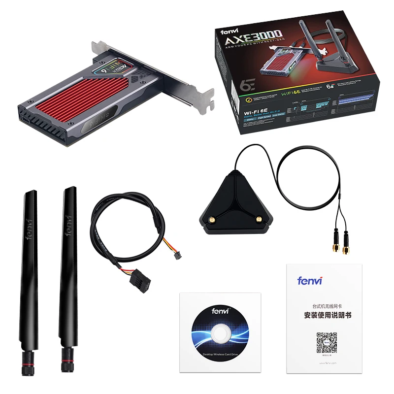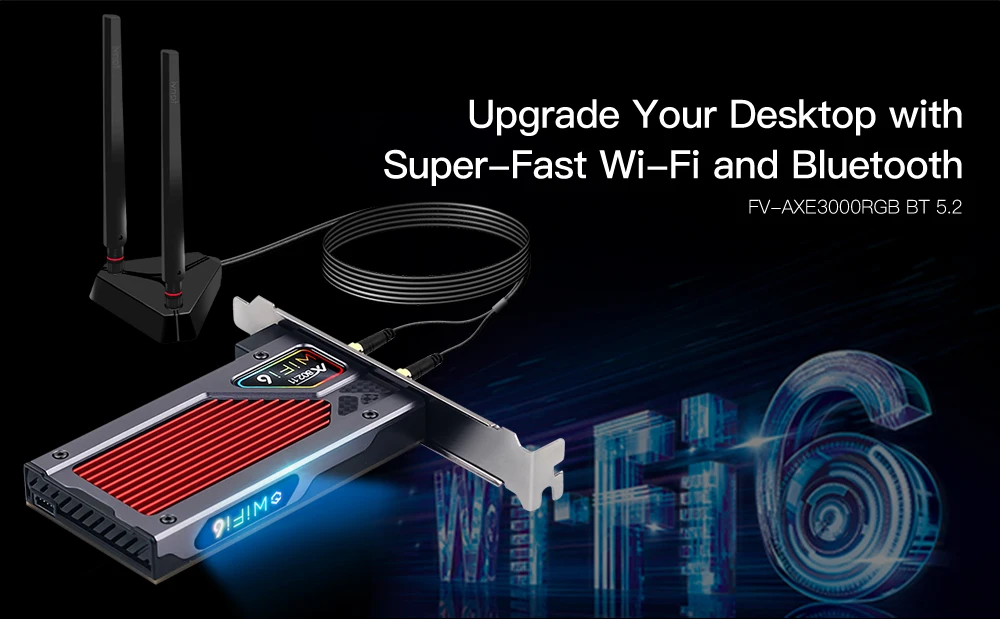 Отзывы о Fenvi AXE3000RGB трехдиапазонная Wi-Fi 6E беспроводная карта Bluetooth 5 2 PCI-E AX210 4g/Φ/6 ГГц адаптер