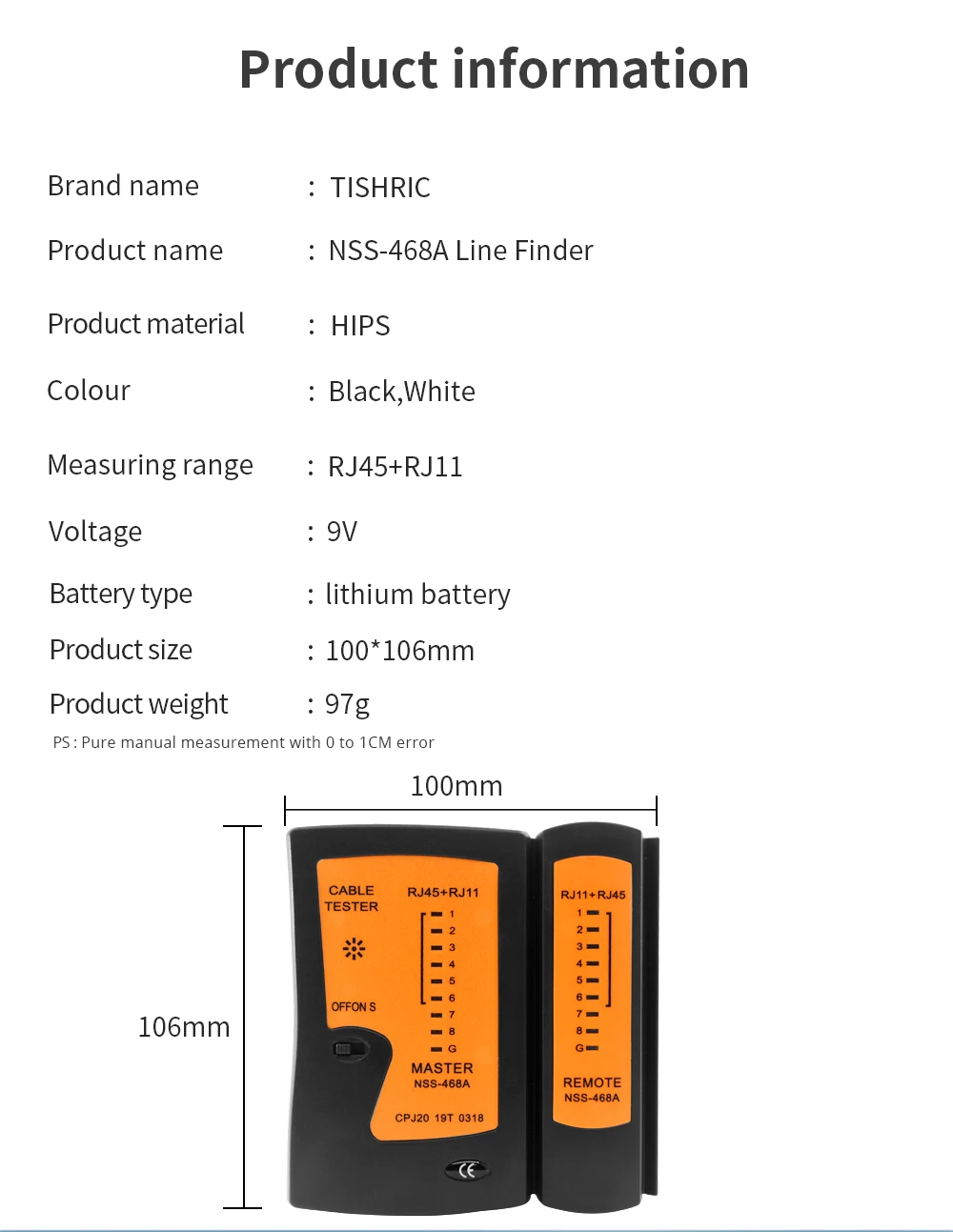 TISHRIC NSS-468A линия Finder сетевой кабель тестер двойной интерфейс RJ11 RJ45 Lan тестер проводка тестер сетевые инструменты черный/белый