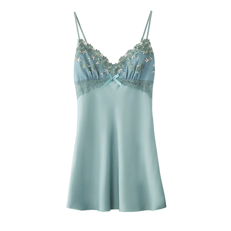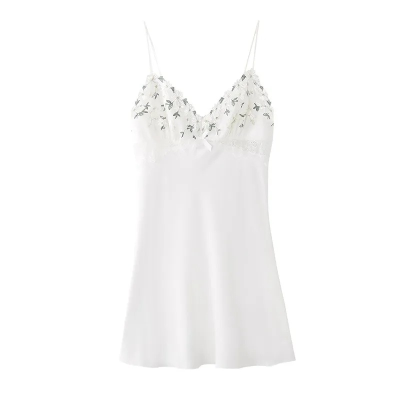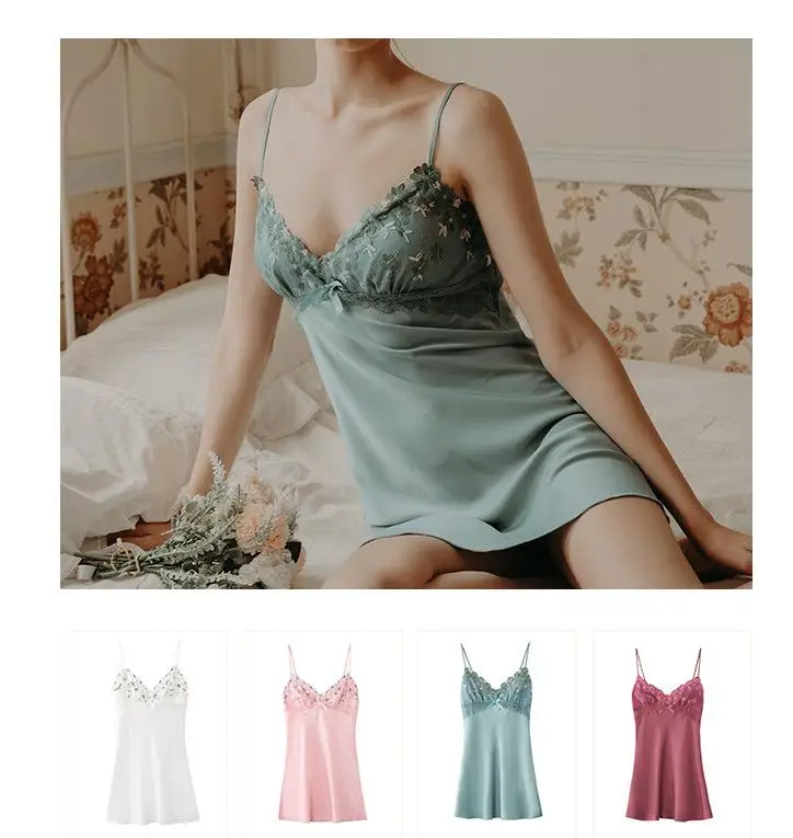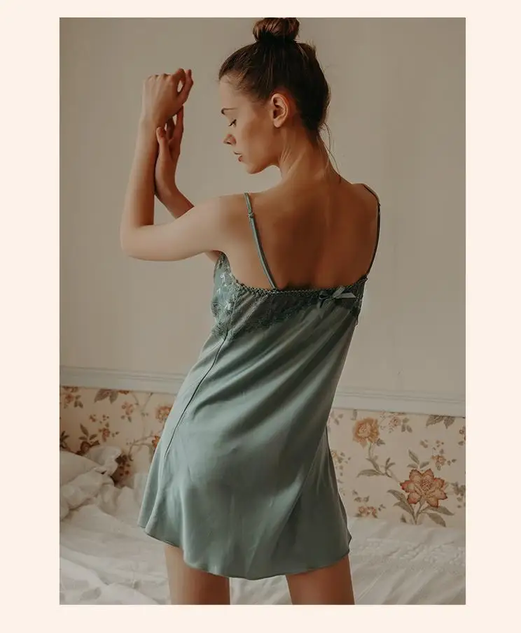 Отзывы о Женская ночная сорочка с цветочной вышивкой и лямкой на шее сексуальная рубашка