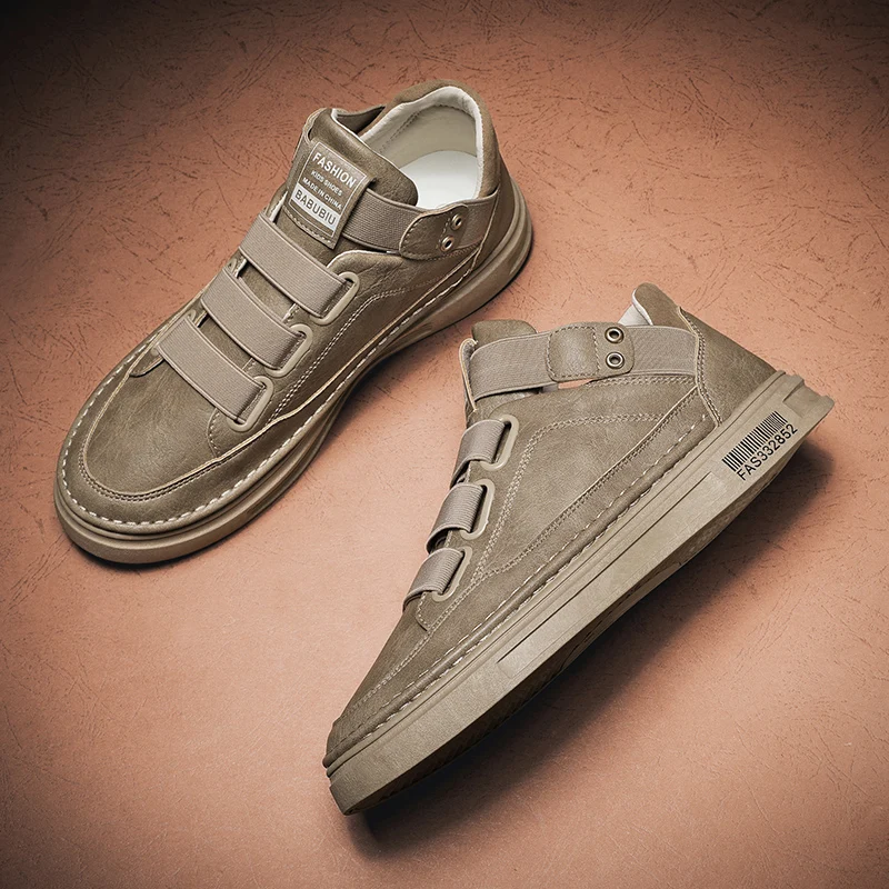 Отзывы о Men Casual Shoes Spring Summer High Top Velcro Sneakers Mens Fashion Black Soft Leather Non-slip Design | Спорт и развлечения