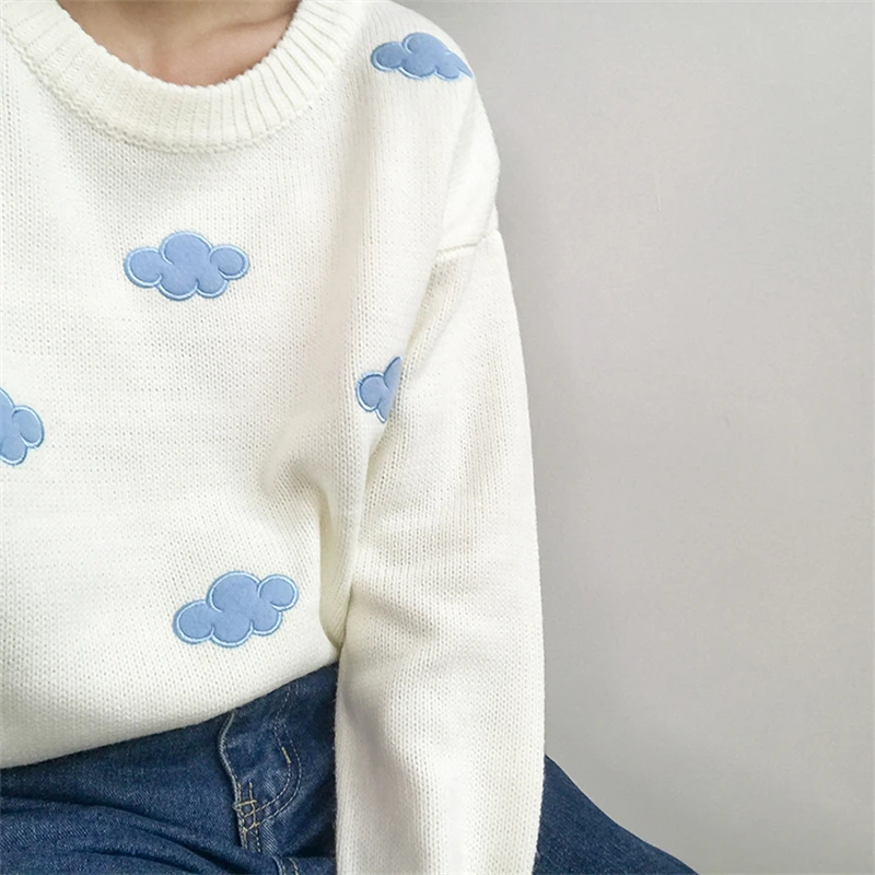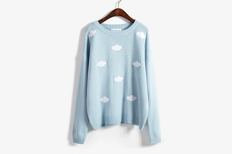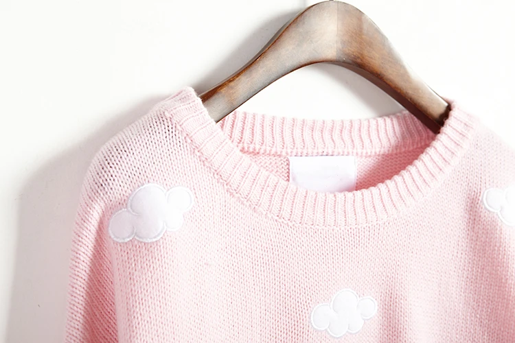 Отзывы о Женский пуловер с аппликацией в виде облаков винтажный Свободный вязаный свитер