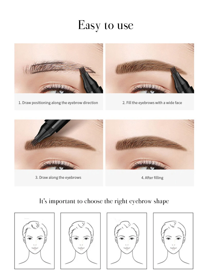 Эффективность продукта: четырехконцевая головка кисти, жидкая текстура, легко описать форму бровей