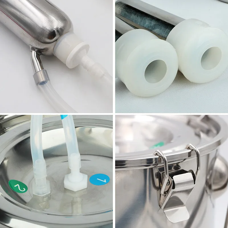 2. Доильная машина использует доильное ведро из нержавеющей стали. Изготовлен из нержавеющей стали 304, прочный, нетоксичный и безвкусный, безопасный и гигиеничный, экологически чистый