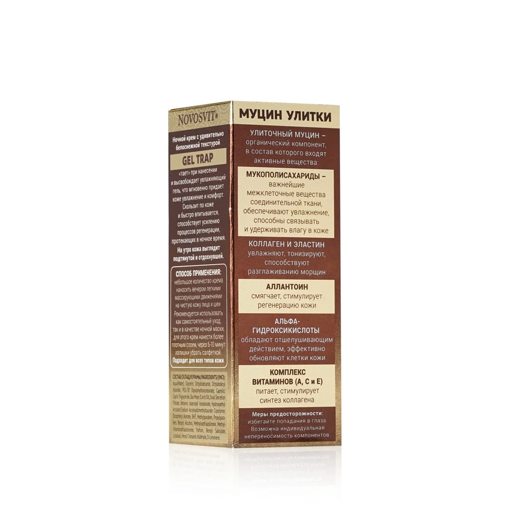 Интенсивный ночной крем для лица Novosvit Snail Repair gel trap с муцином улитки 50мл