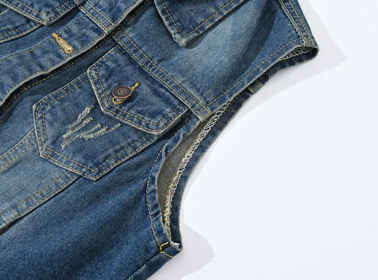 Отзывы о Женский джинсовый жилет без рукавов темно-синий из денима с отложным воротником