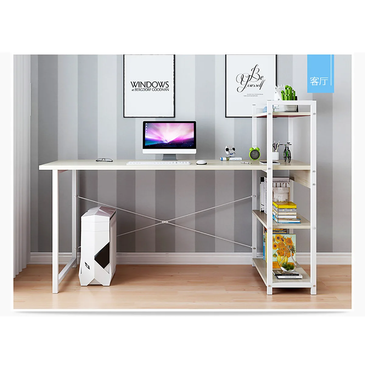 【Просторный Рабочий стол и вместительные полки для хранения 】 компьютерный стол можно разместить в вашем домашнем кабинете, спальне и офисе, чтобы служить в качестве компьютерного стола, офисной рабочей станции, учебного стола, письменного стола. В четырехъярусные полки можно положить книги, игрушки, предметы коллекционирования, учебные инструменты, рабочие материалы, предметы первой необходимости и т. д.