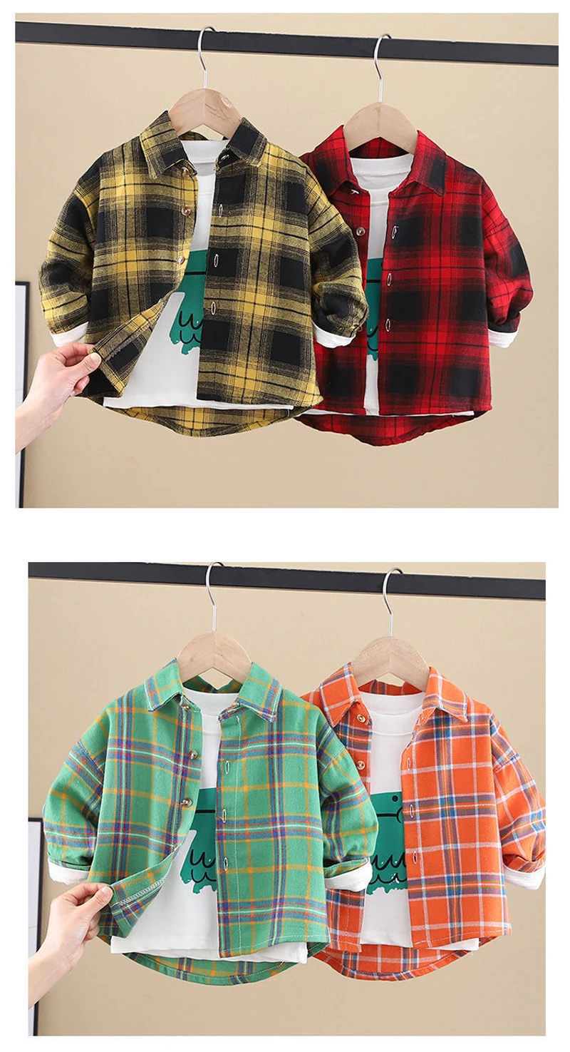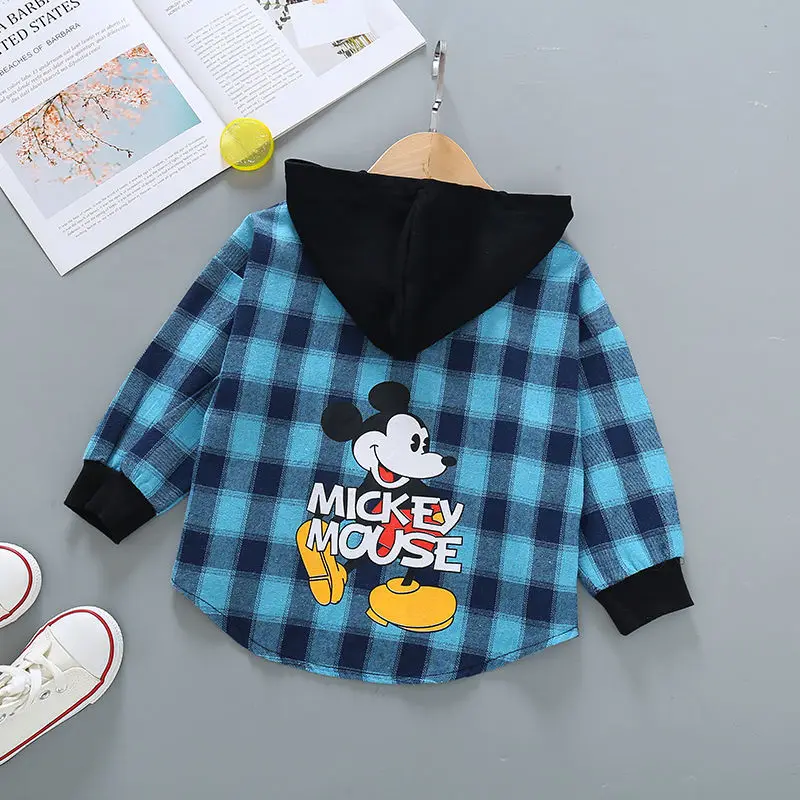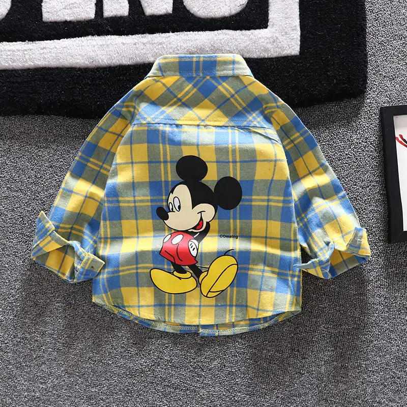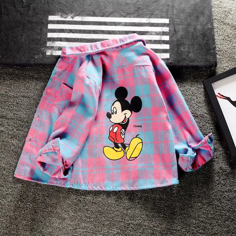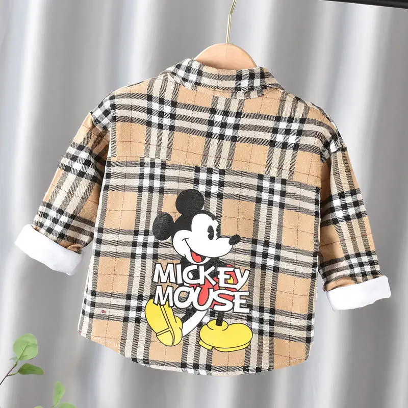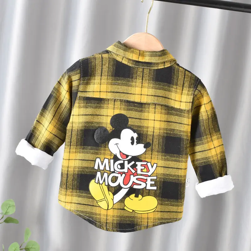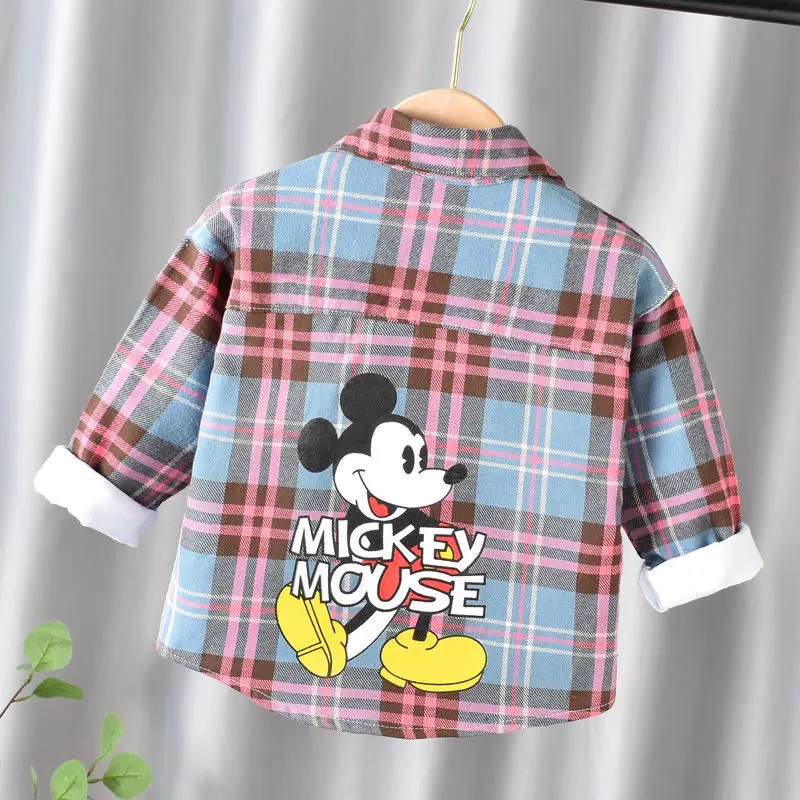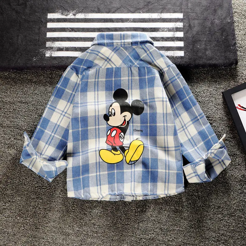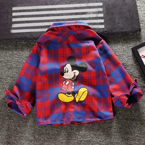 Отзывы о Рубашка для мальчиков с Микки Маусом длинным рукавом в клетку весенне-осенняя