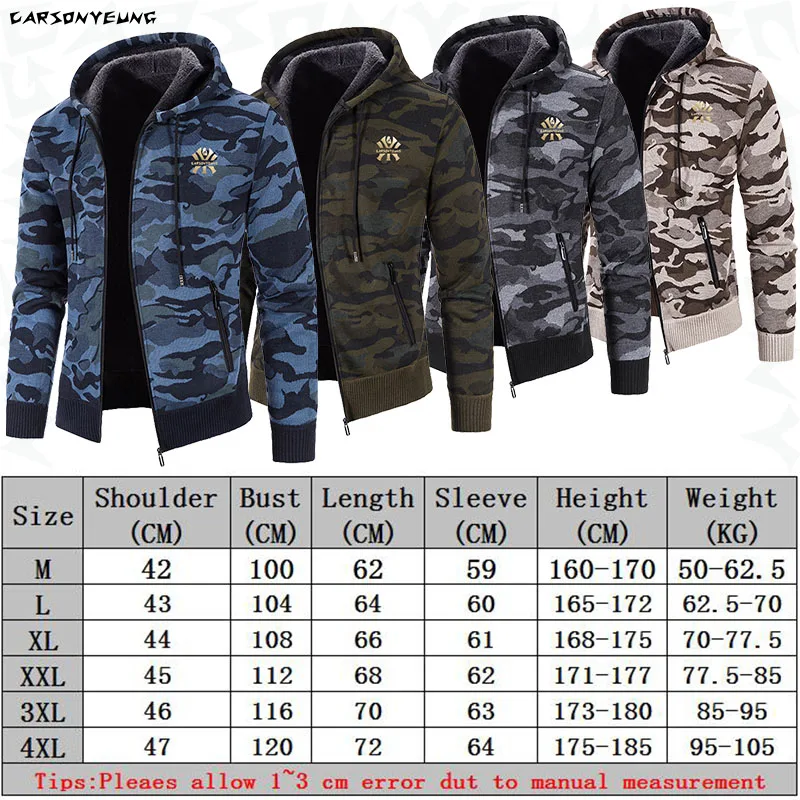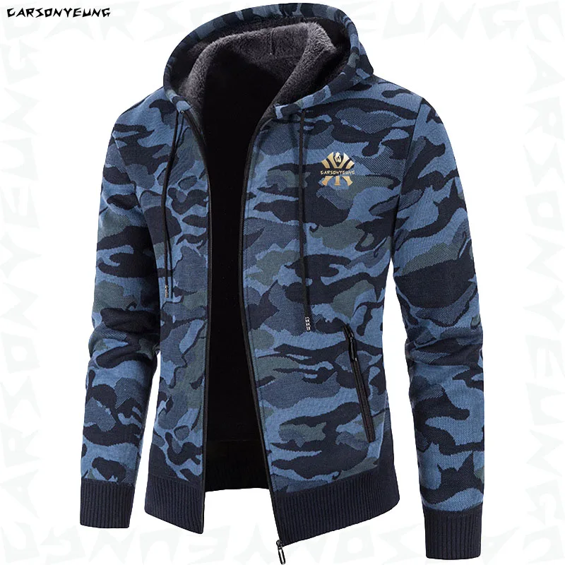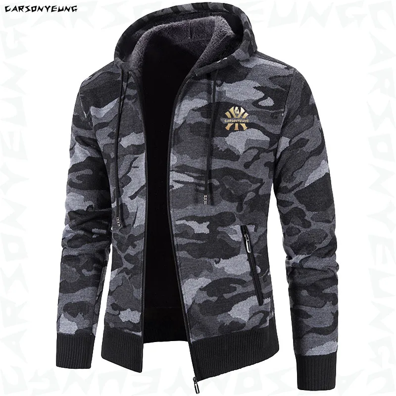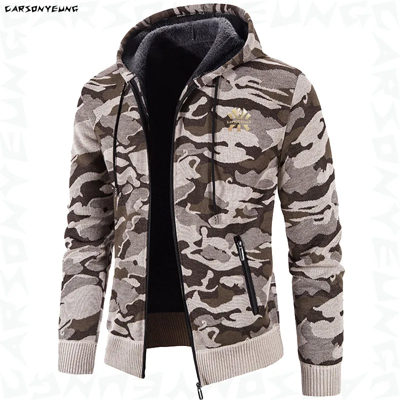 Отзывы о Мужской Камуфляжный кардиган теплый шерстяной свитер с капюшоном на молнии в