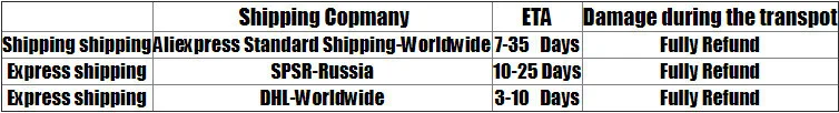 А. Все наши продукты отправляются в хорошем состоянии, специально изготовленная упаковка и повреждения крайне редки. Однако мы заменим любые поврежденные продукты, если поврежденный товар будет сообщен нам при доставке (в течение 24 часов с момента получения). Мы не можем, кроме каких-либо претензий за пределами этого срока извините.Пожалуйста, проверьте ваши товары при доставке!