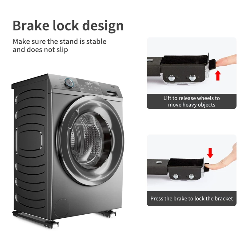 Никаких сложных шагов установки или инструментов не требуется. Просто поместите стиральную машину под холодильники, стиральные машины или другие бытовые приборы, затем нажмите вниз тормоза обоих концов, чтобы сохранить устойчивый, если не использовать. И поднимите тормоза, чтобы двигаться.
