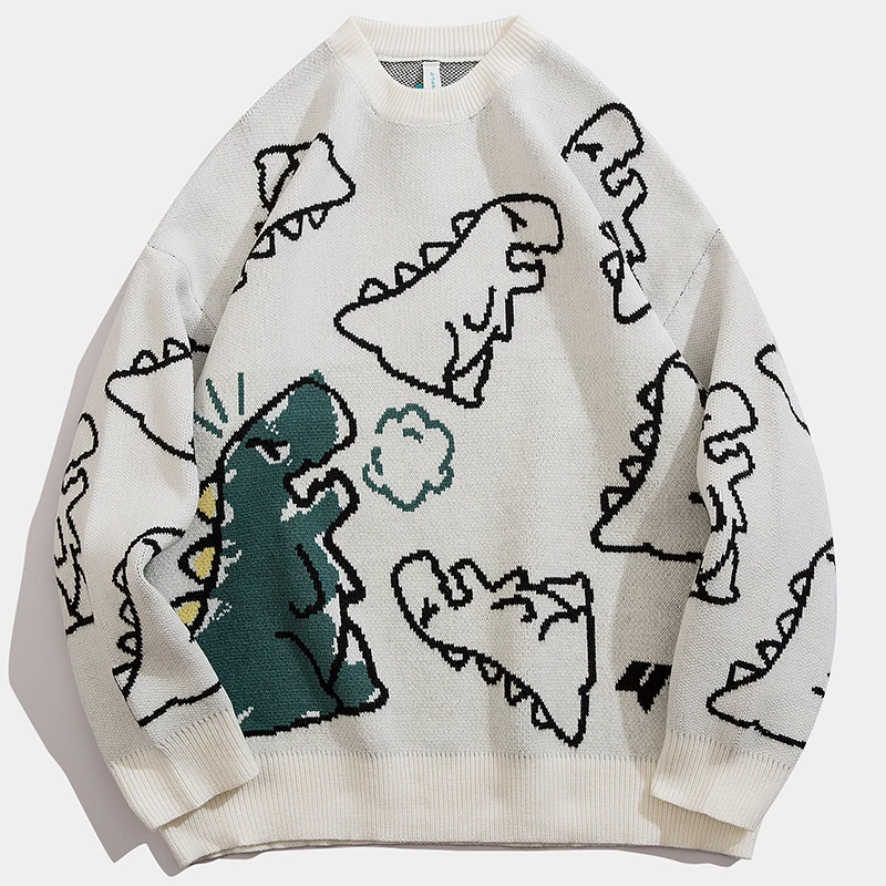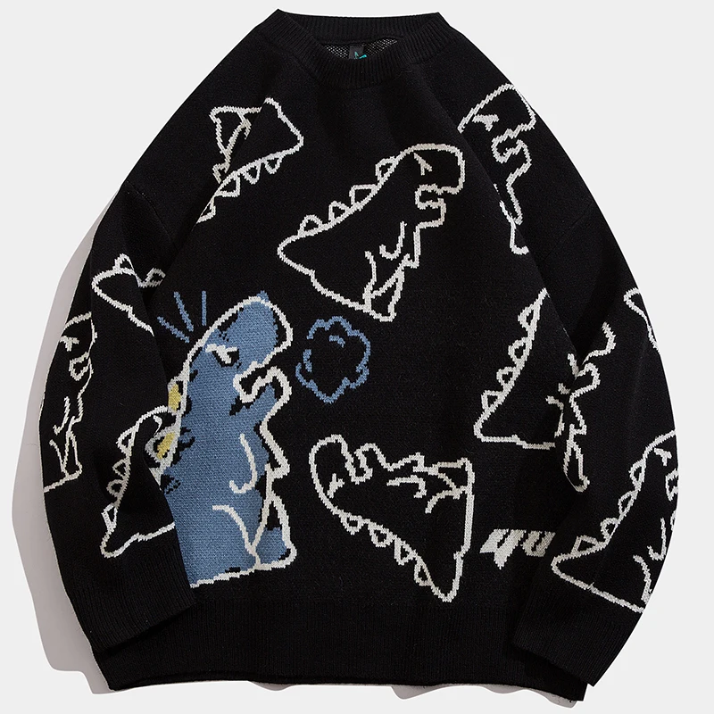 Отзывы о Мужской трикотажный свитер с аниме динозавром повседневный пуловер в уличном
