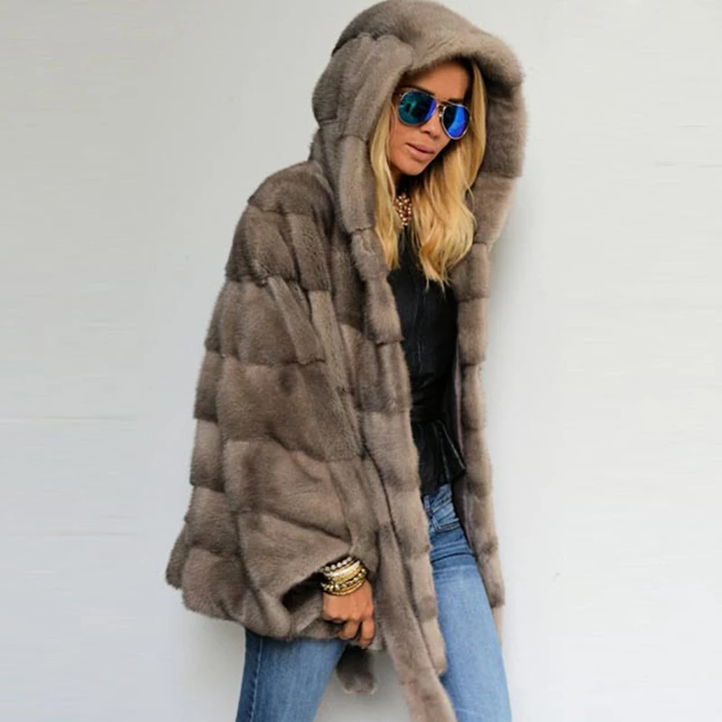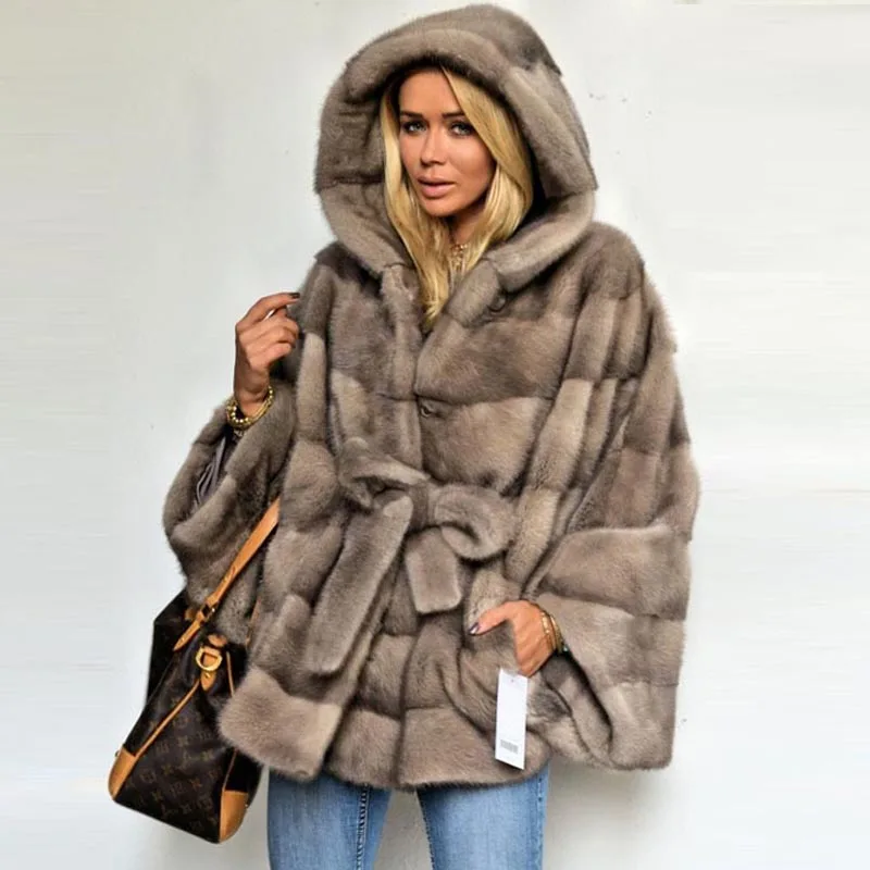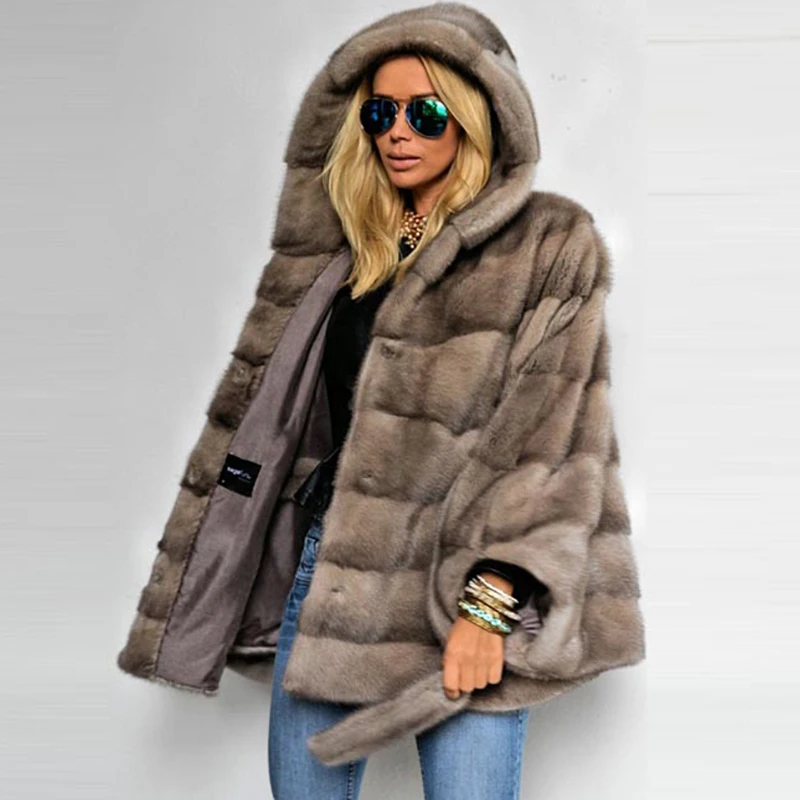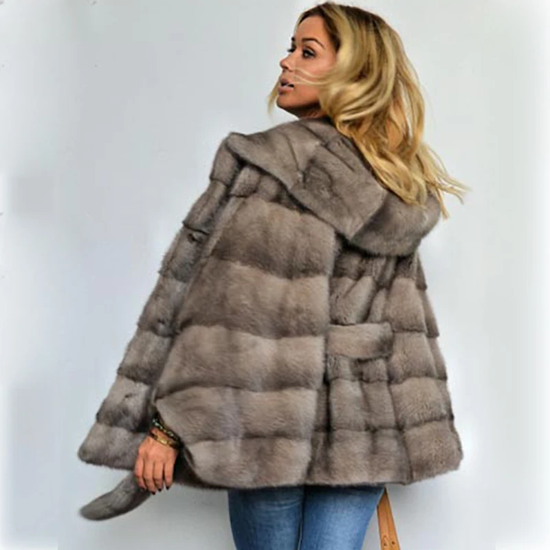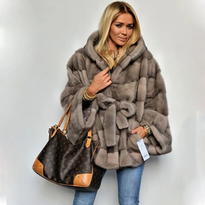 Отзывы о Женские трендовые шубы из натурального меха норки свободные рукава летучая мышь
