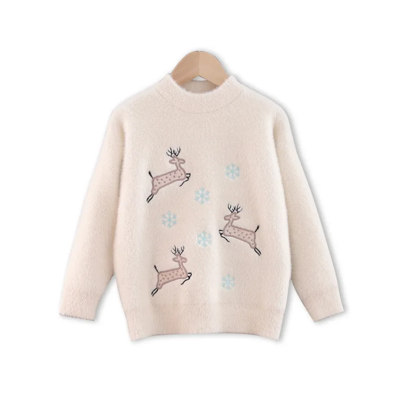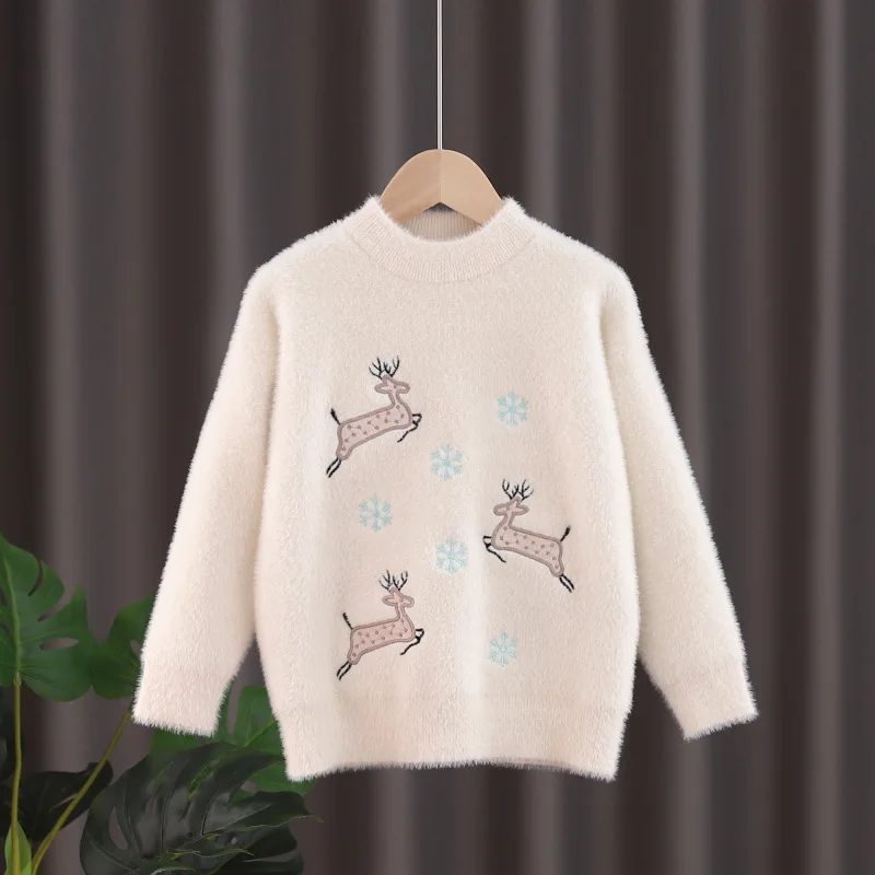 Зимние Свитера для девочек Детский свитер с рисунком рождественского оленя для девочек трикотажная одежда с аниме детские пуловеры с круглым вырезом, шерстяные свитера Новая осенне-зимняя детская вязаная одежда