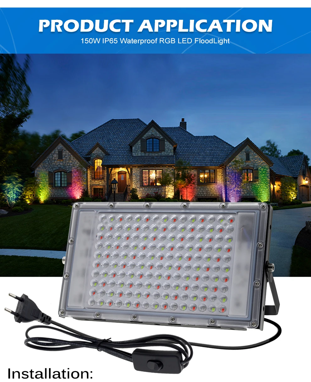 Отзывы о Светодиодный RGB-прожектор 150 Вт IP65 уличный прожектор 220 В переменного тока