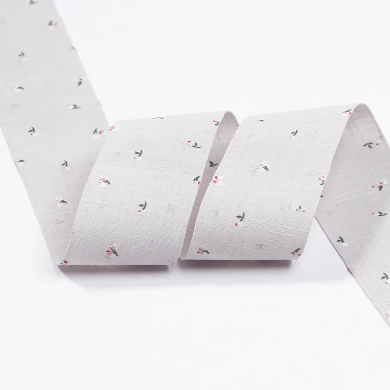 5 ярдов Двусторонняя мини-лента с цветочным принтом из хлопка и льна, аксессуары для волос с бантом, украшение для одежды, шляпы, букета