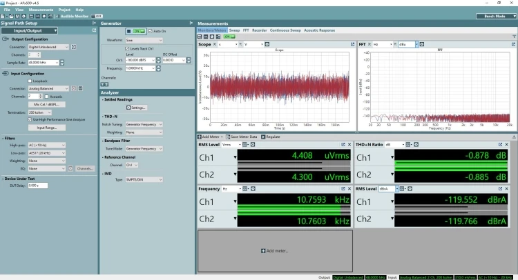 Динамический диапазон: A-W XLR: >124 дБ, RCA: >124 дБ