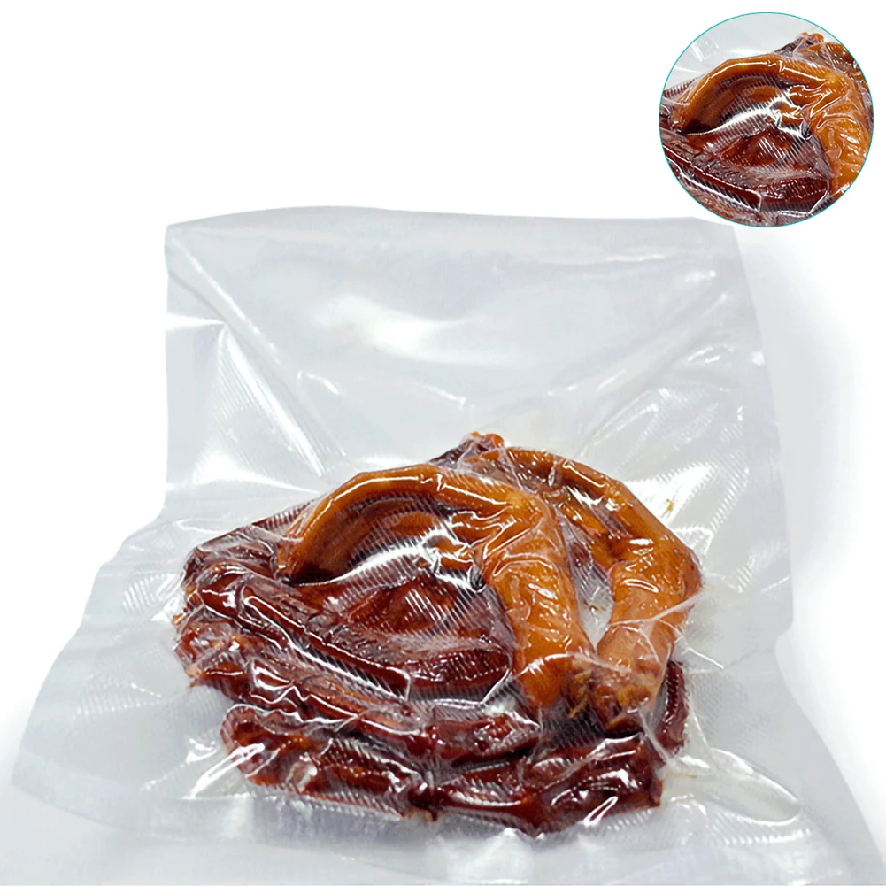 «Материал»: новый чистый нейлон PE материал, семислойный высококачественный мешок для упаковки пищевых продуктов, подходит для всех пищевых вакуумных упаковок, которые также могут быть использованы для упаковки других продуктов. Сетчатый рулонный мешок мягче, он немного прочнее, чем нейлон, и чувствует себя более комфортно, но он мягче, чем полиэфирный композитный и обычный Вакуумный пакет PA/PE. Между этими тремя видами новый чистый нейлон PE не легко растягивается независимо от толщины материала. Просто потяните за рот сумки (это лучший способ отличить материалы). Вакуумный мешок из этого материала имеет стабильное качество эвакуации, небольшой уровень утечки воздуха и длительный срок годности. Вакуумный пакет из этого материала подходит для всех пищевых продуктов.