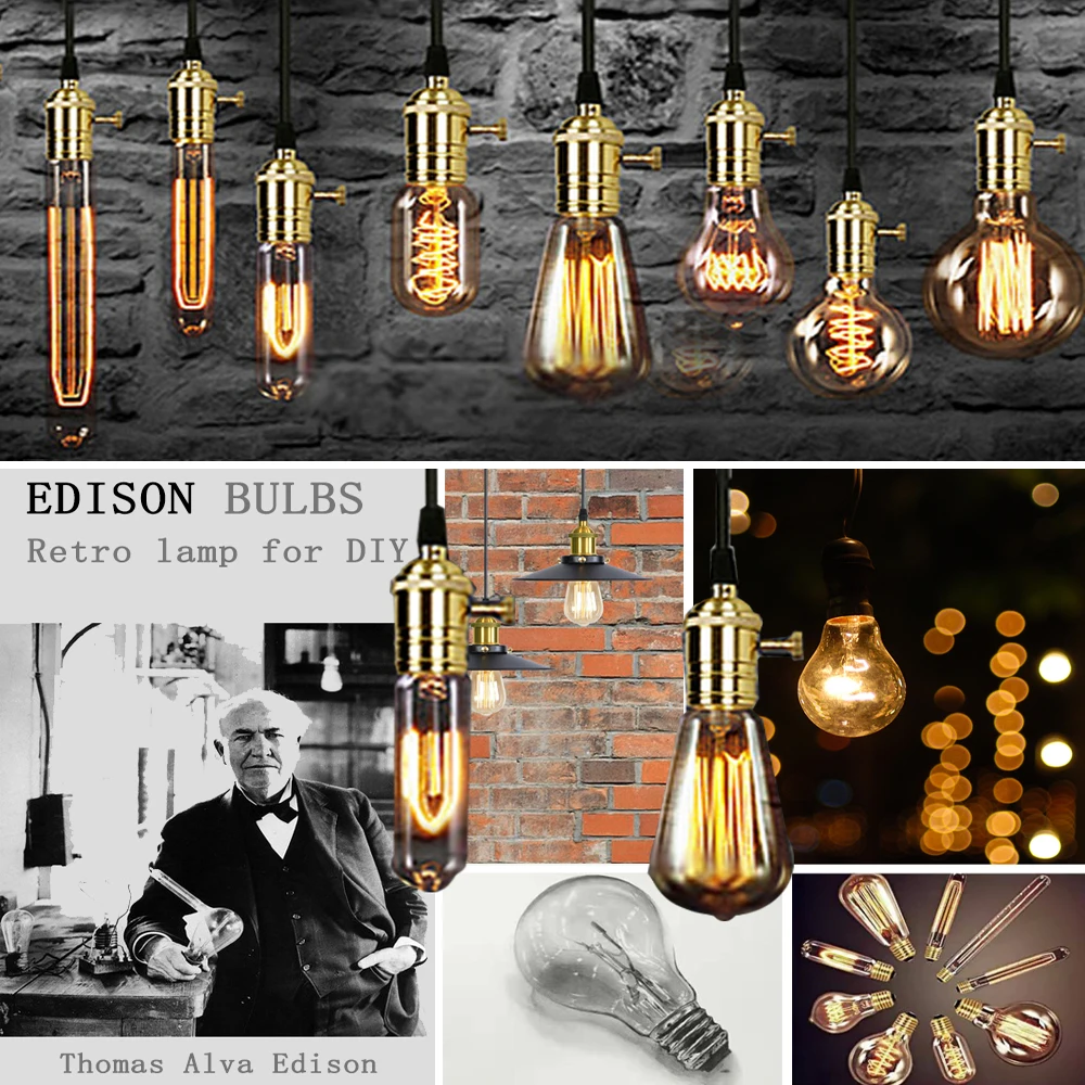 Подвесной светильник в стиле ретро Винтаж лампочки Эдисона E27 можно использовать энергосберегающую лампу или светодиодную лампочку) 220v светильник накаливания 40w Светодиодная лампа накаливания lampada для домашнего украшения ST64 G80 G95 T10 T45 T125 T185 T225 T300 A19 A60