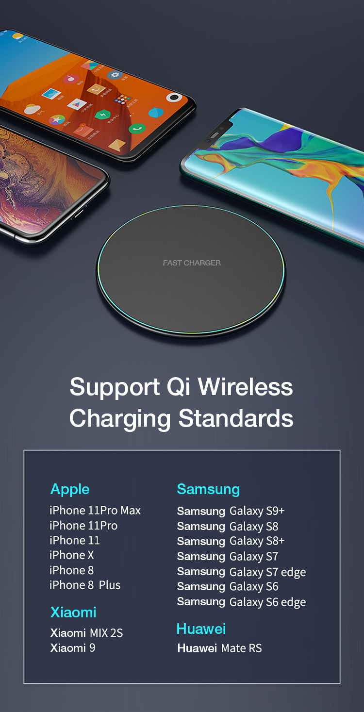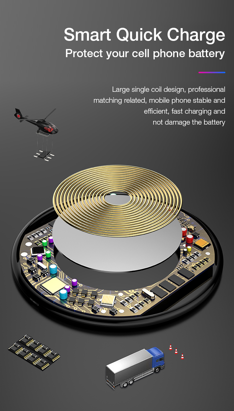 Large single coil design, professional matching related, mobile phone stable and efficient, fast charging and not damage the battery