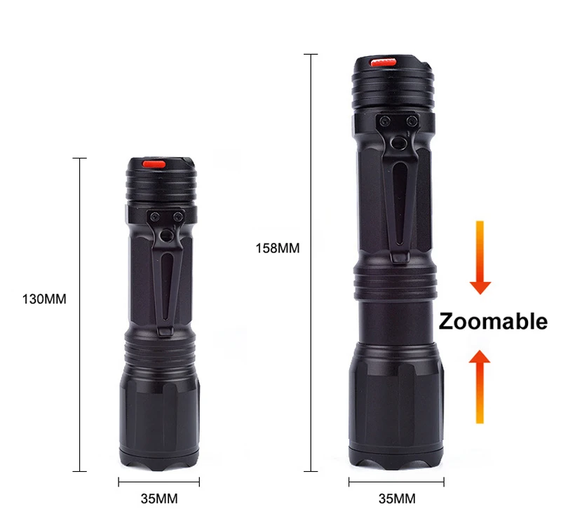【Zoomable & amp; Rechargeable】 Масштабирование как прожектор светильник обеспечивает широкий обзор при поиске целей. Вам просто нужно вытянуть голову, чтобы уменьшить масштаб и отодвинуть назад, чтобы увеличить масштаб. Поставляется с литий-ионным аккумулятором большой емкости 18650 и зарядным устройством с индикацией батареи, зарядка имеет перегрев и защиту от перезаряда, позволяет использовать фонарь более удобным, не нужно покупать дополнительные аксессуары.
