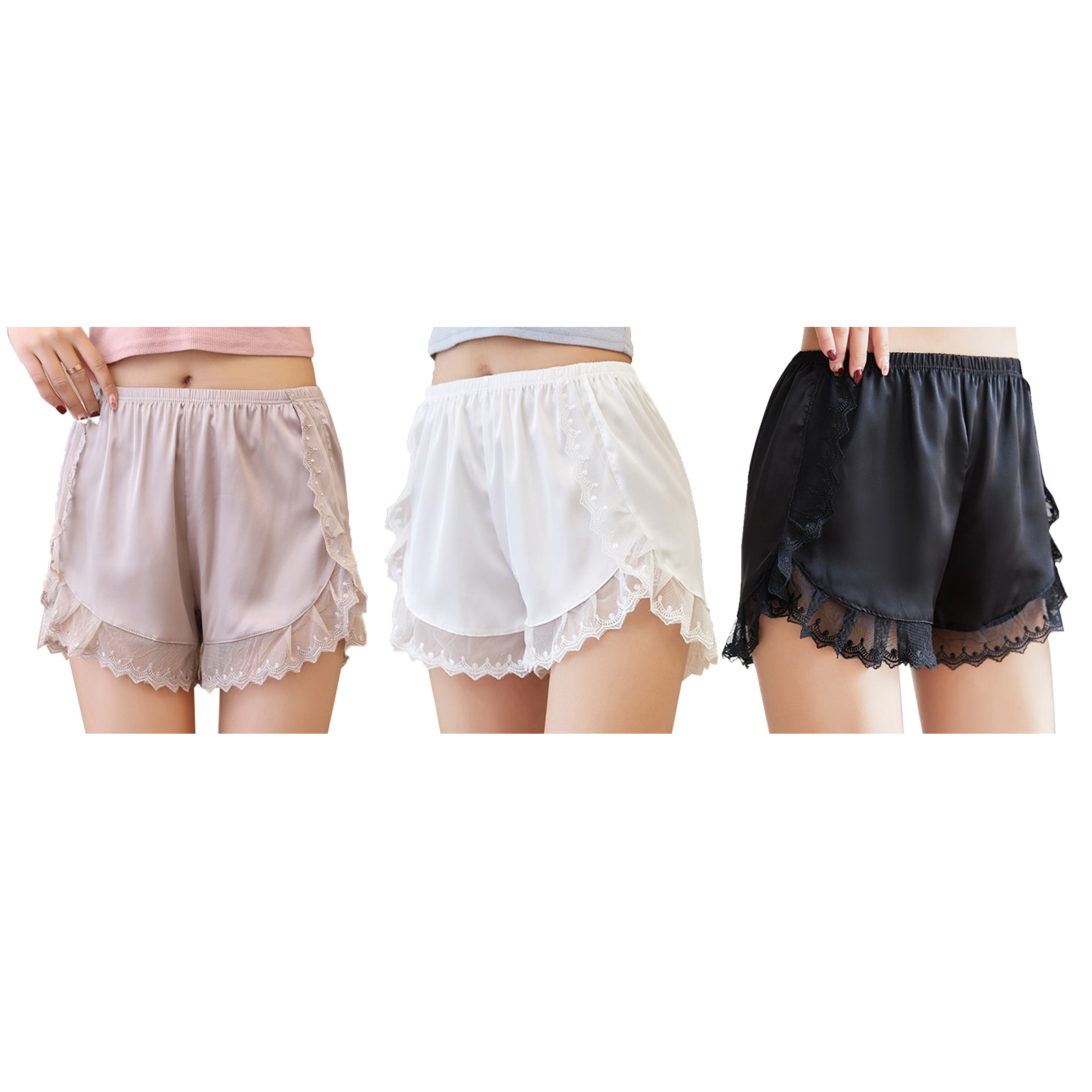 Женский с кружевной отделкой атласные шорты средней талии эластичный пояс Однотонные трусы пижамные штаны.