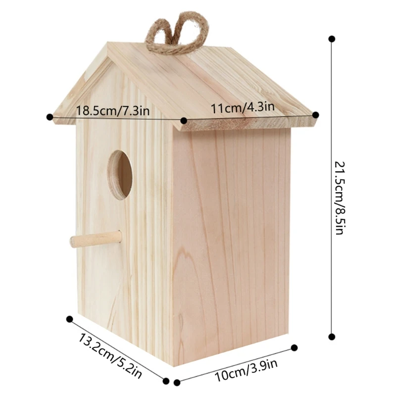 Деревянный птичий домик: Изготовлен из экологически чистого дерева, безопасный, нетоксичный и прочный. Подходит для Finch, Chickadee, Titmouse, Warbler и Nuthatch.