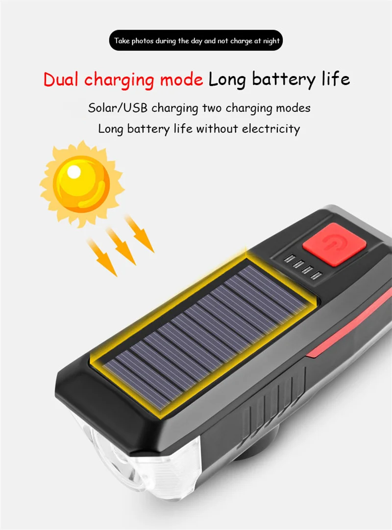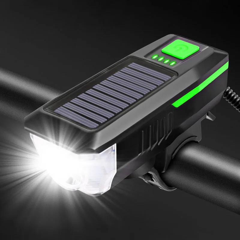 Зарядное устройство на солнечной батарее для велосипеда светильник 3 режима светодиодный дорожный горный велосипед передний светильник Водонепроницаемый велосипедный Звонок светильник USB Перезаряжаемые головной светильник