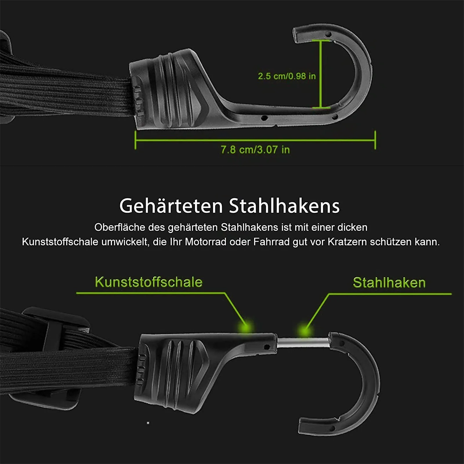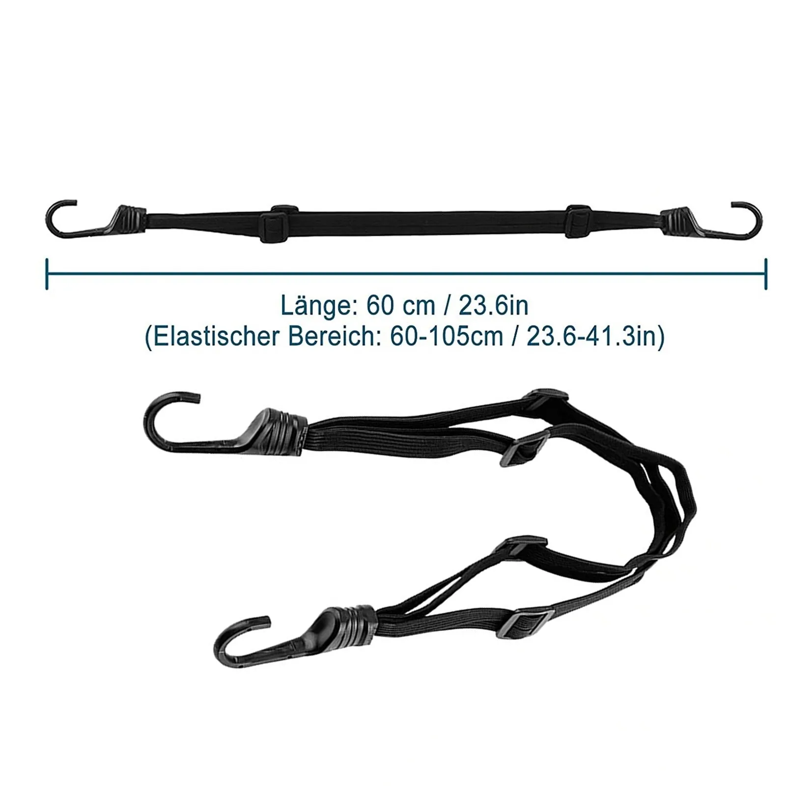 Каждый ремешок Состоит из 4 маленьких ремешков, и вы можете свободно регулировать интервал 4 небольших натяжных ремня для лучшего покрытия объекта. И четыре ветви могут Надежно фиксирует предметы в разных направлениях.