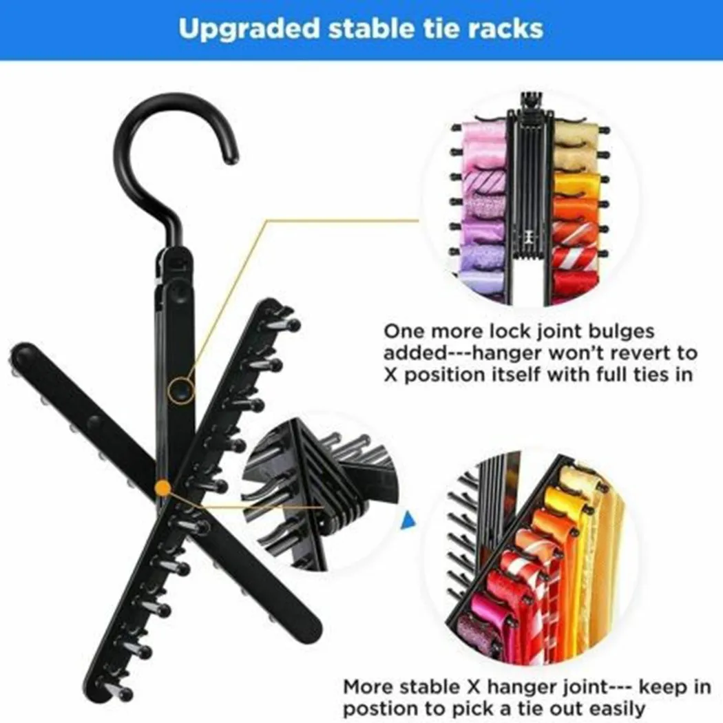 * Доступно-кончик пальца 360 градусов вращающийся крючок вешалка для легкого выбора. Органайзер для галстука Cross X shape twirrling позволяет легко выбрать галстук, просто повернуть его и сделать свой выбор из ваших морщин, аккуратно хранимых галстуков.