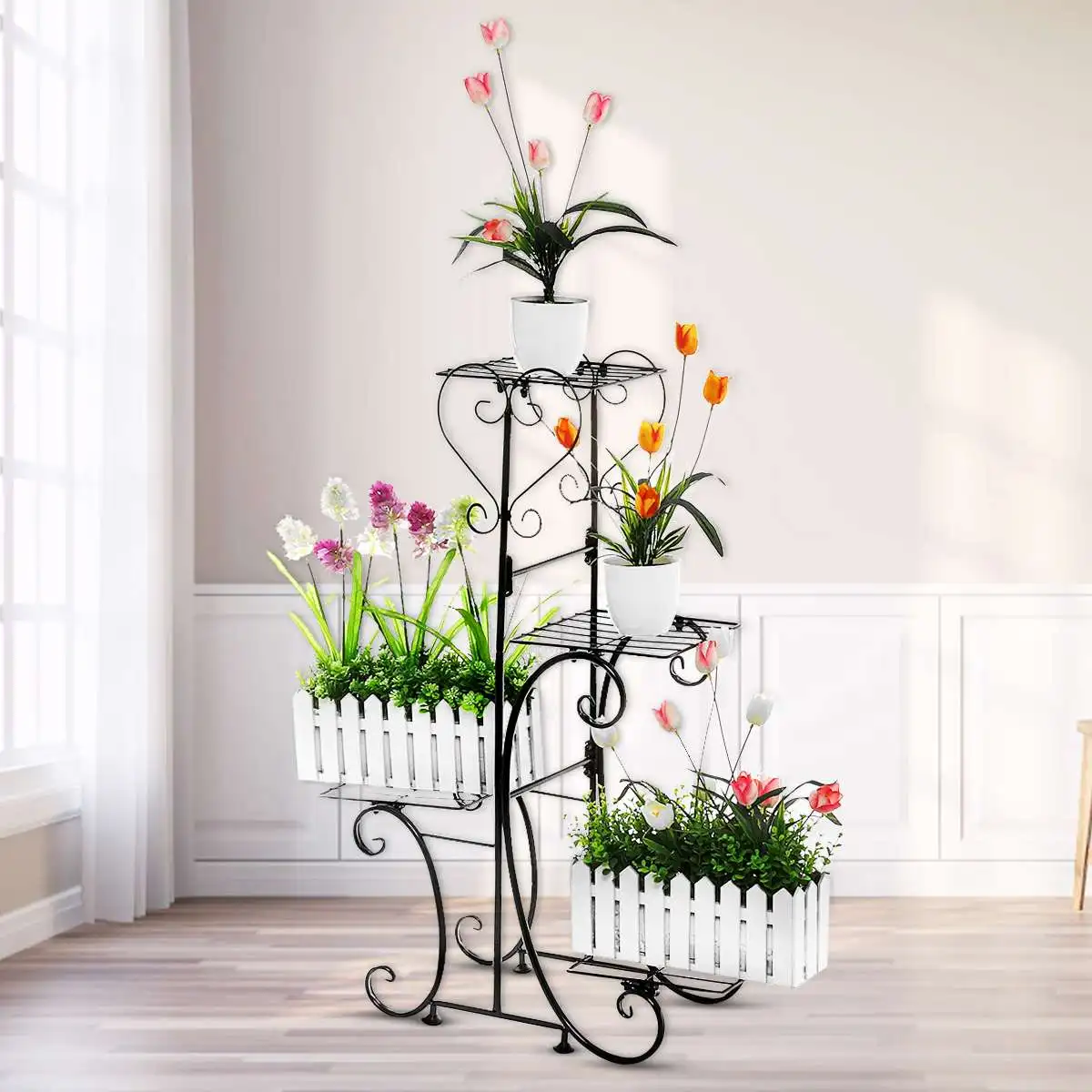 -Многофункциональный 4-уровневый металлический садовый стенд: садовый Железный цветочный держатель горшков может вмещать 4 плантатора, он украшает ваш дом, сад, балконы, прихожую, патио, палубу, за исключением подставки для растений, его также можно использовать в качестве книжной полки, полки для хранения.