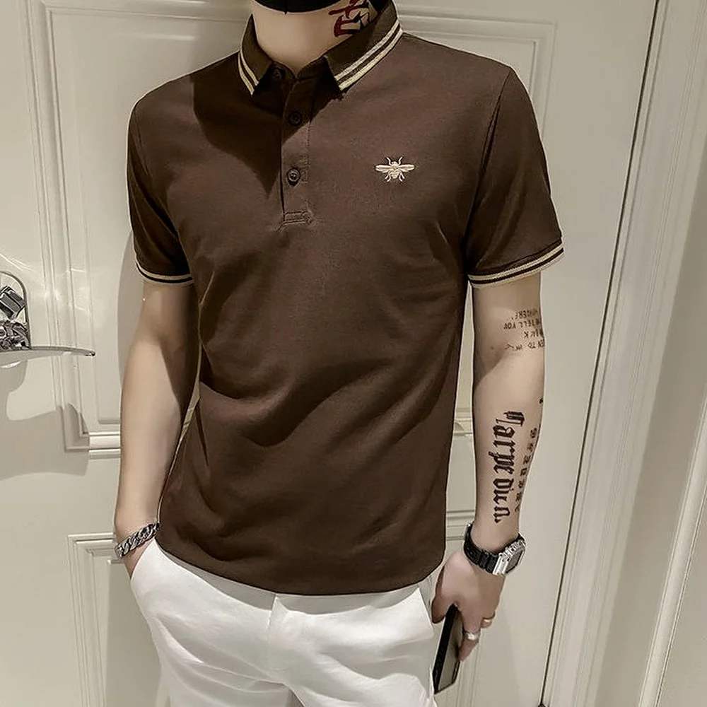 Отзывы о Рубашка-поло мужская с вышивкой Повседневная футболка цвета хаки отложным