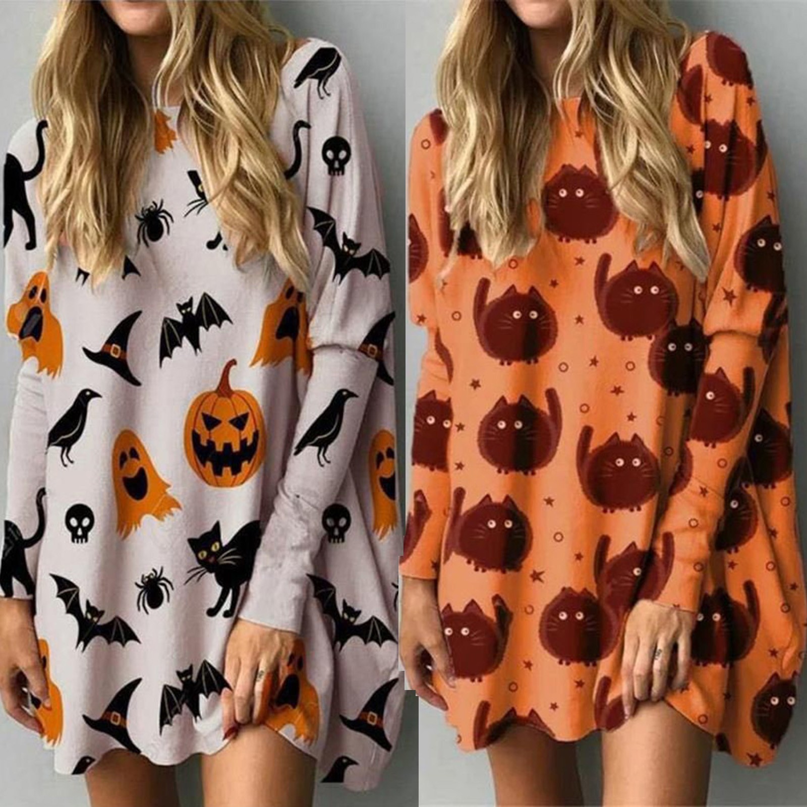 Отзывы о Женское пляжное платье на Хэллоуин свободное платье-рубашка с длинным рукавом и