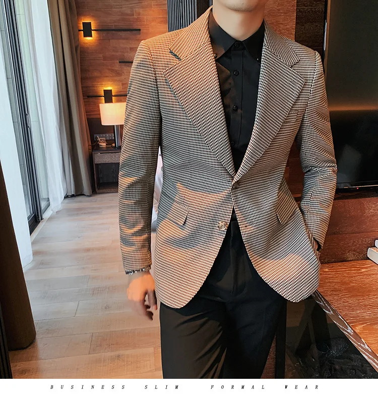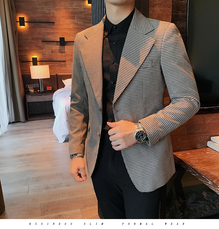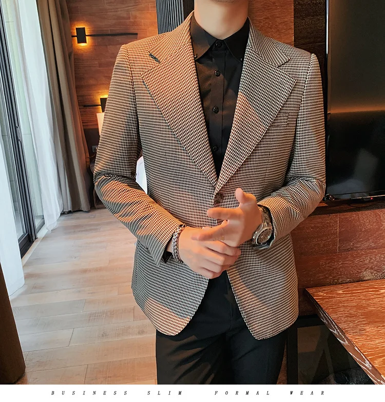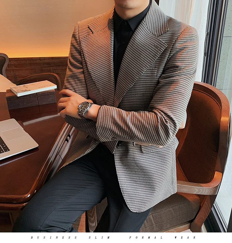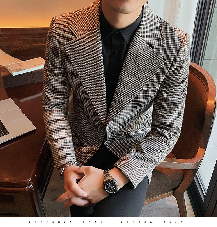 Отзывы о Клетчатый мужской блейзер для мужчин Уличная одежда пальто Veste Homme 2021 Осенние