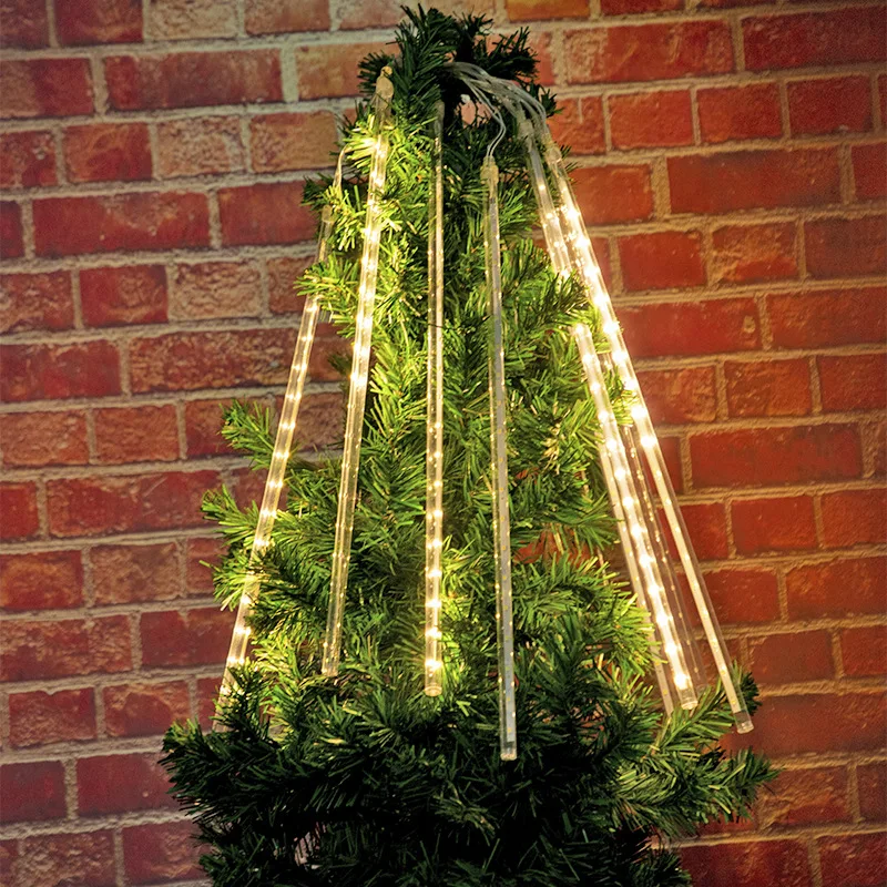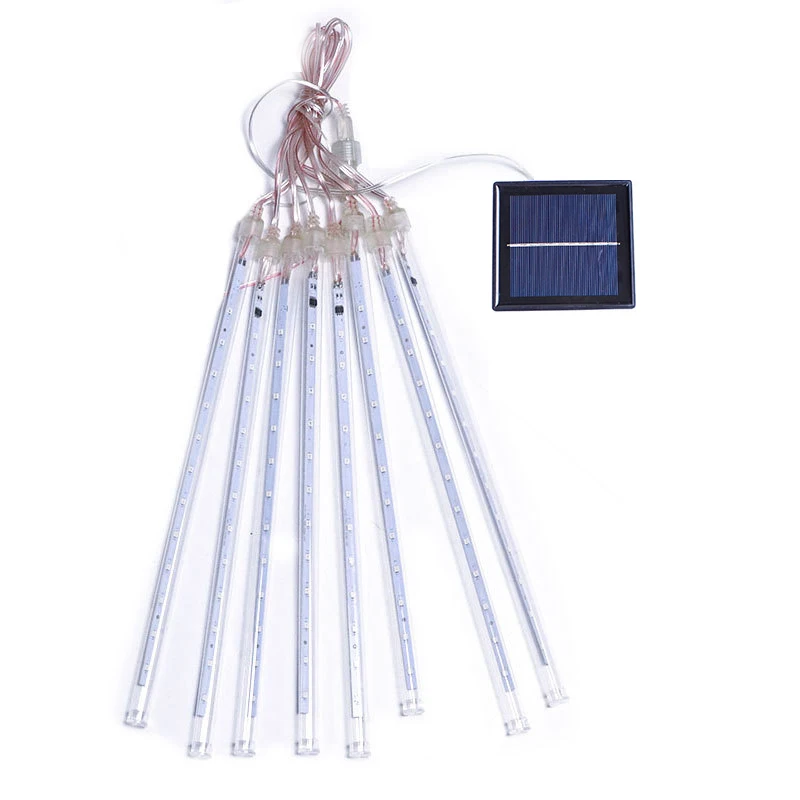 Солнечный метеоритный дождь на открытом воздухе 30 см 8 трубок 192 светодиодный падающий дождь сказочные гирлянды для дерева праздничный порог, двор патио на крыше вечерние рождественские украшения