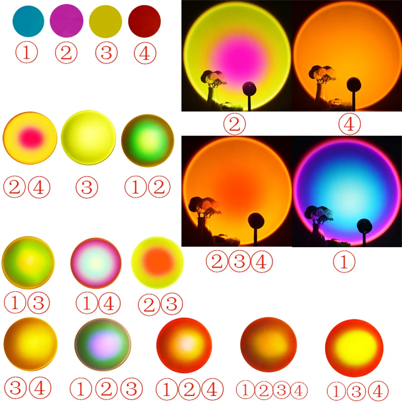 Головка лампы заката может поворачиваться на 360 градусов, она может производить различные огни под разным углом, создавая блестящую атмосферу, Наслаждайтесь красотой разных цветов. Вращающийся светильник может регулировать размер и форму прожектора Ночной светильник.