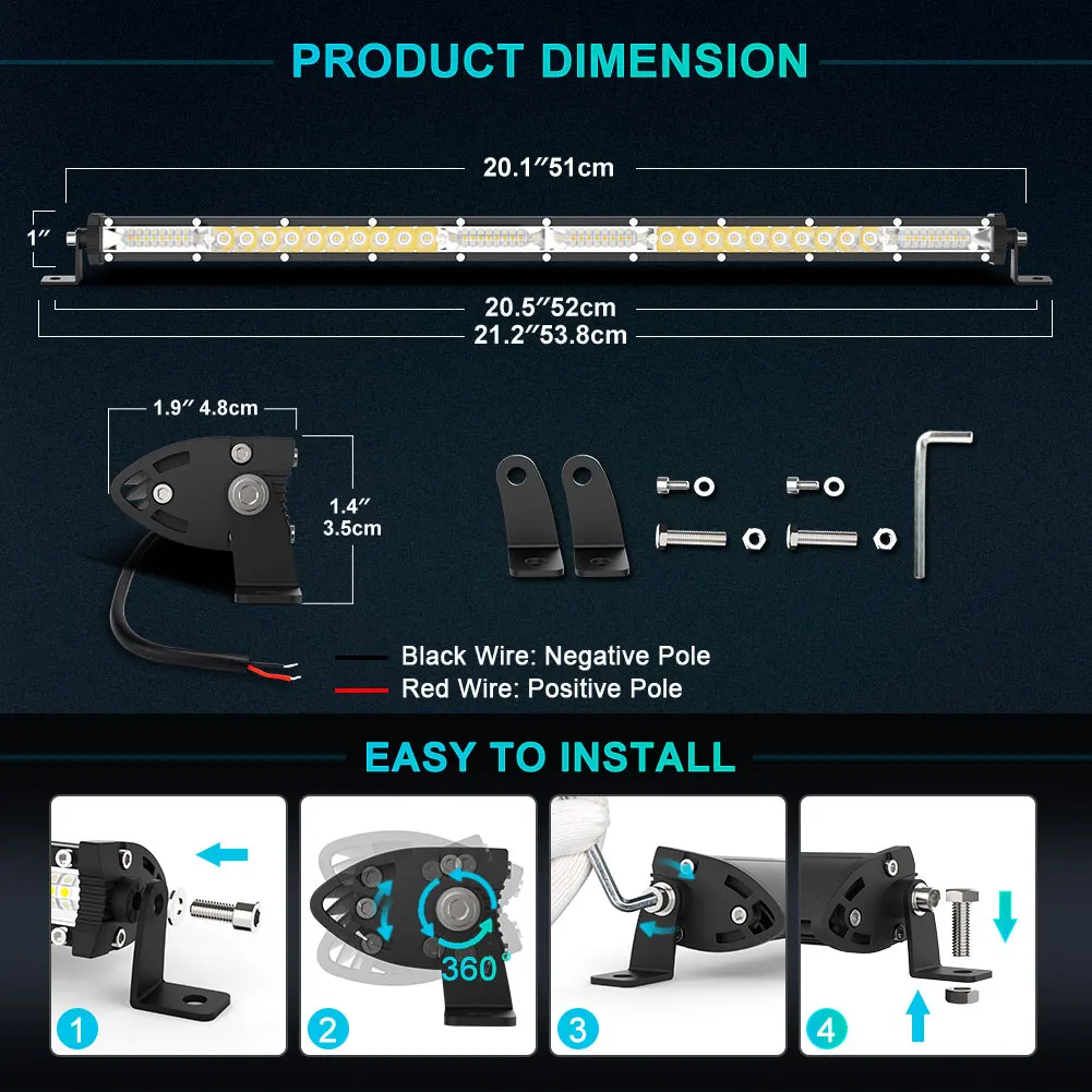 ● Naoevo тонкий Однорядный светодиодный бар не должен быть очень большим и грубым.
