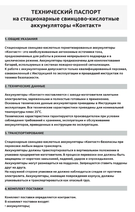 Rechargeable batteries for application in security and fire systems, video surveillance systems, access control systems, light and sound alert systems. The high quality of the robotic conveyor assembly and the production using the AGM technology allow the batteries to contact without maintenance for the entire service life (more than 5 years). The case is made of shockproof ABS plastic. Wide range of operating temperatures. Possibility of operation in vertical and horizontal placement of the battery. Do not require complex maintenance.Specifications