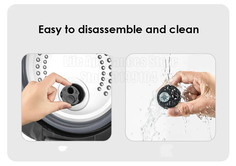 ● Разборка проста и легка в очистке, конструкция верхнего отверстия, линия уровня воды для приготовления каши и риса, а также корпус для рисования металлической проволоки;