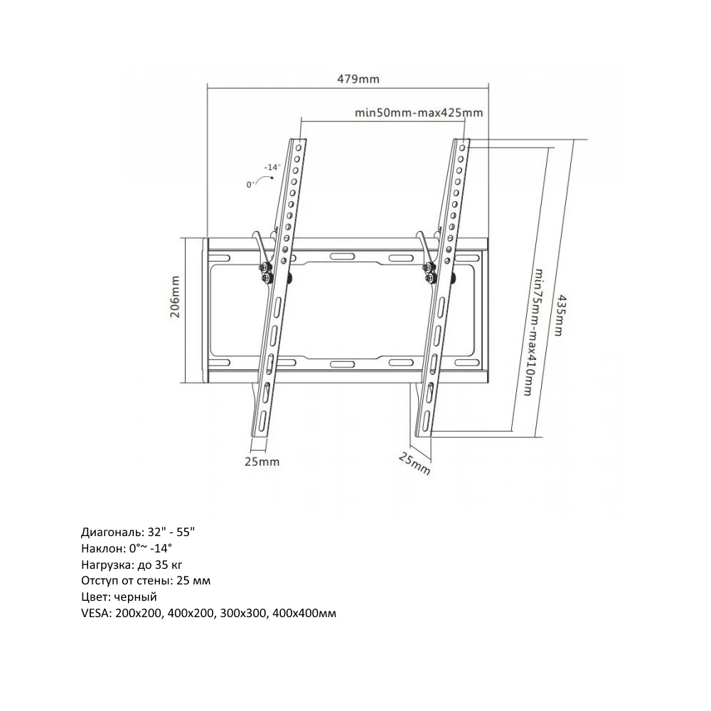 Настенный кронштейн Logan inc. Universe 4 с функцией наклона позволит надежно и без лишних затрат закрепить телевизор диагональю от 32" до 55" и весом до 35 кг на стене Вашего дома или офиса. Фиксированный отступ от стены данной модели составляет всего 25 мм, что делает эту модель одной из самых тонких на рынке. Функция наклона данной модели кронштейна позволит зафиксировать телевизор под углом 0° вверх до 14° вниз.
