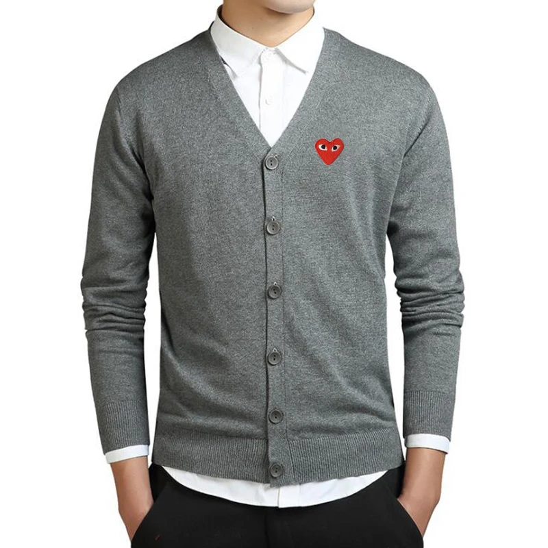 PLAY мужской кардиган с вышивкой и сердечками, с v-образным вырезом, с длинными рукавами, однобортный, хлопковый, весна-осень, свободный, Повседневный свитер