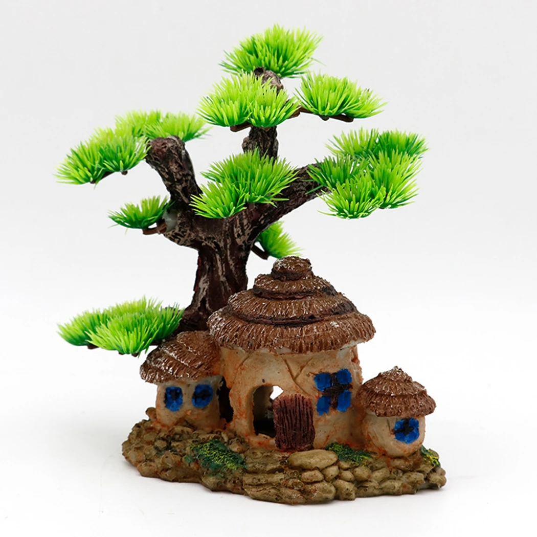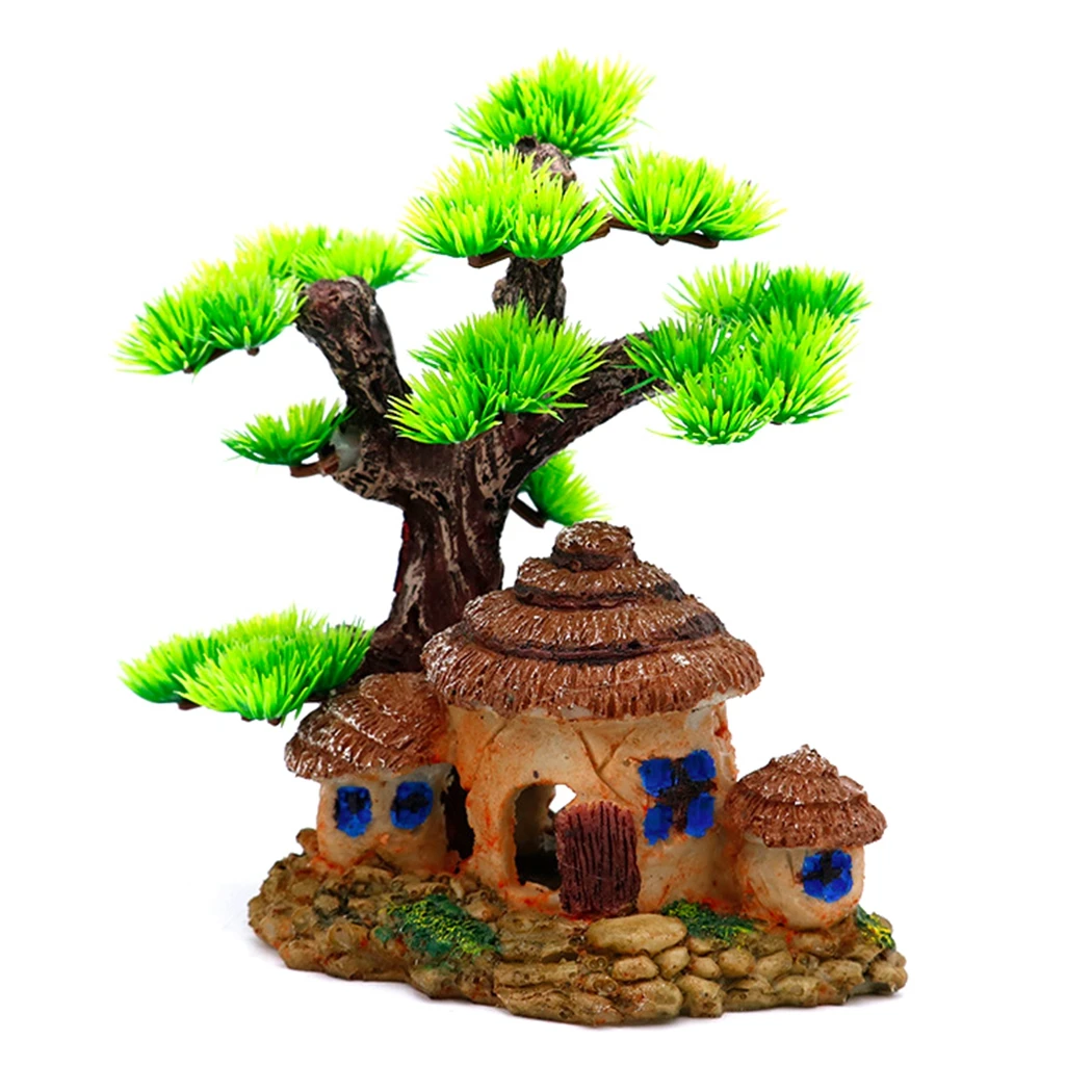 Декоративные элементы: украшение в виде аквариума является реалистичным, благодаря чему Ваш аквариум будет выглядеть ярким и естественнымДизайн: украшение для аквариума с искусственным деревом и домом может обратить Ваше внимание на Рыбок