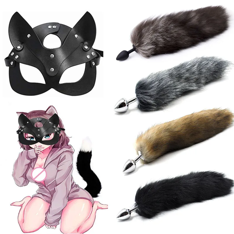Силиконовая/металлическая Анальная пробка с лисьим хвостом, секс-игрушки SM для взрослых, вечерние сексуальные полумаски для кошек, эротические аксессуары для костюма