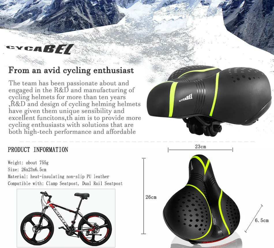 CYCABEL 3D гелевое велосипедное седло для мужчин и женщин, мужское утолщенное седло для горного велосипеда, шоссейное седло, дышащее удобное мягкое Велосипедное Сиденье