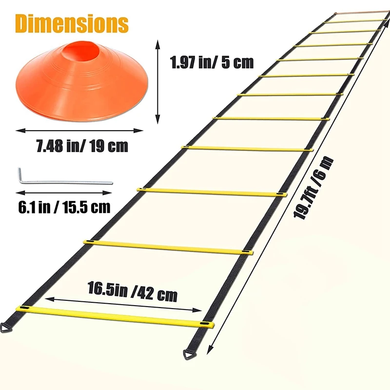 [Легко носить с собой] эту лестницу ловкости можно использовать в домашнем тренажерном зале или на траве, чтобы максимизировать уровень тренировок и превзойти соревнование. После завершения обучения вы можете поместить весь набор предметов в сумку для хранения.