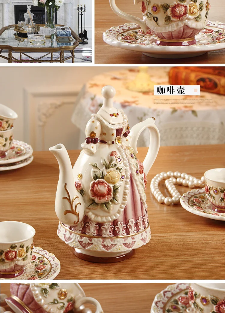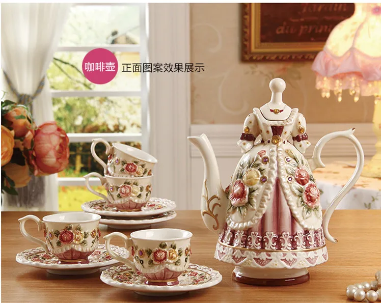 Отзывы о Креативная ручная роспись тисненые розы керамическая кофейная чашка и кофейник
