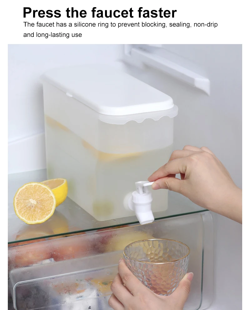 * Вечерние диспенсеры для воды/напитков в холодильнике. Сделать все виды холодных напитков, как вам нравится. Вы можете положить фрукты, чай, мед, молоко, сок и спирт в холодный чайник. Позволяет пить прохладную воду и напитки в любое время в жаркое лето. Это лучший выбор для сохранения здоровья, офисного отдыха и вечеринок.
