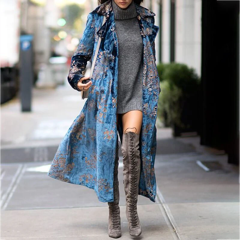 Отзывы о Осеннее элегантное пальто с цветочным принтом Женское зимнее повседневное