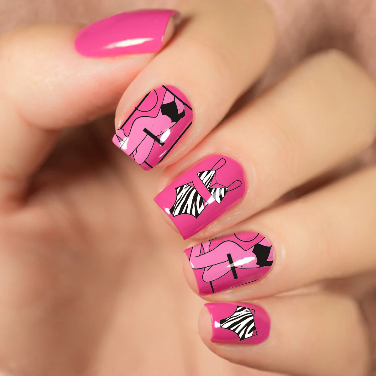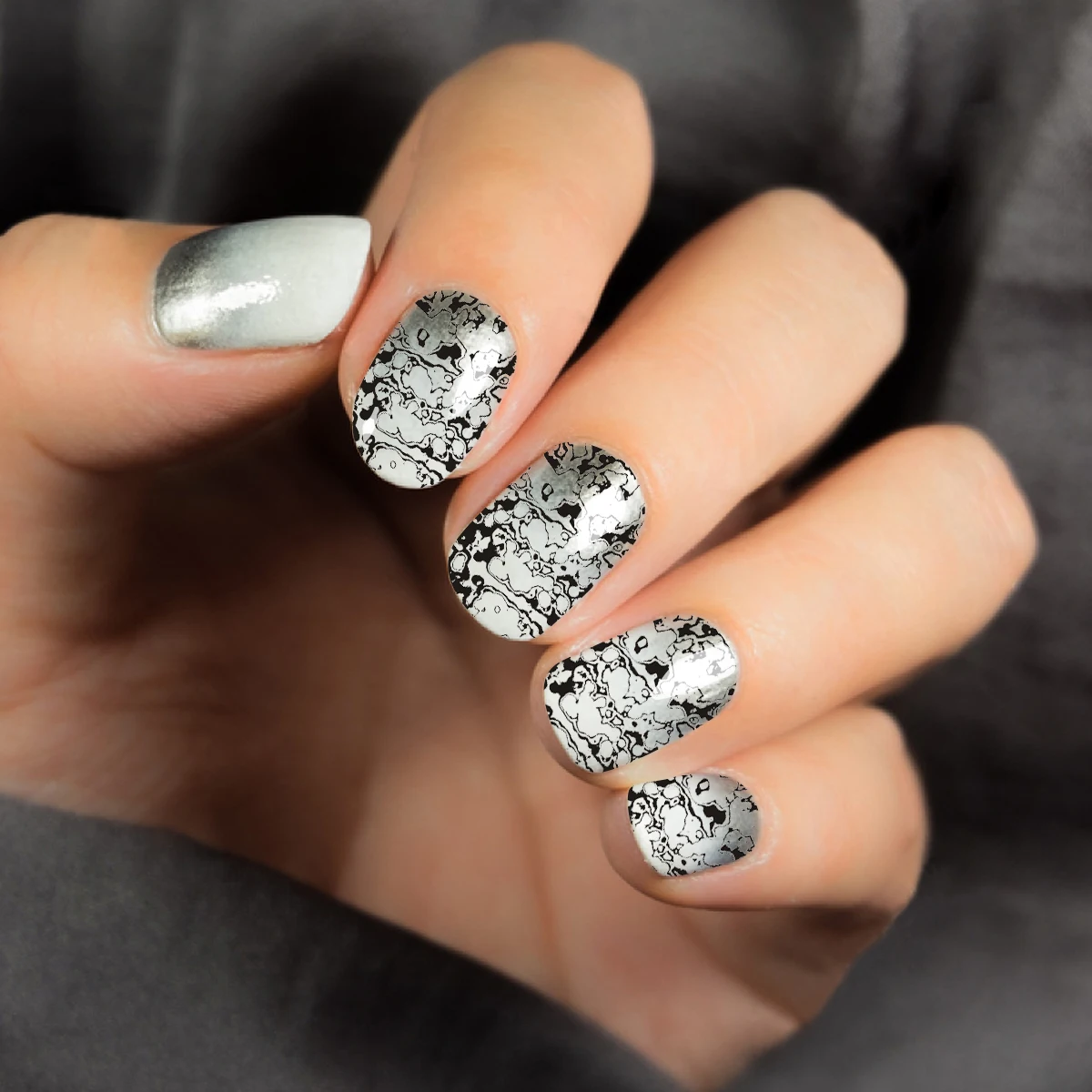 Особенность: 1. Нанесите Базовое покрытие или обычный лак на ноготь. 2. Нанесите лак для ногтей на желаемое изображение в пластине. (Рекомендуется: использовать сплошной цвет лака для ногтей, так что текстура толще, чем у любого другого лака для ногтей) 3. Поставьте скребок под углом 45 градусов и БЫСТРО снимите излишки лака, плотно прижимая скребок. Сразу прижмите штамп, немного провернув его, чтобы переснять рисунок. Изображение переносится на штамп. 5. Отпечатайте изображение на ногте, немного провернув штамп. Изображение переносится на ваш ноготь. 6. Повторите вышеописанные шаги на остальных ногтях.