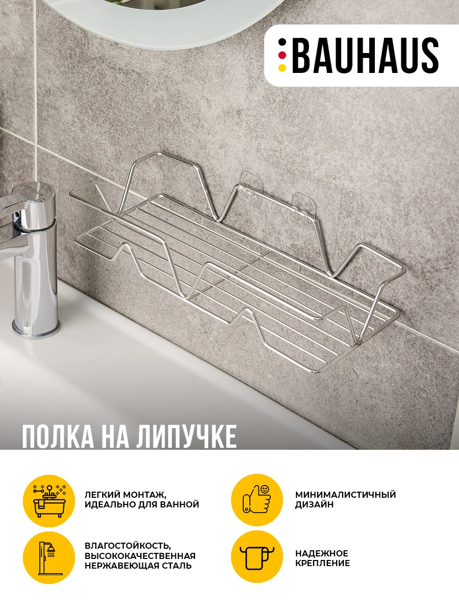 Отзывы о Полка для ванной комнаты и кухни BAUHAUS настенная металлическая на липучках. Из